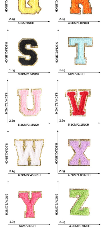 - 規格型號:5.5厘米黃色自粘膠一套26個字母*毛巾繡