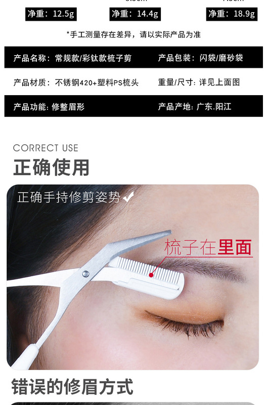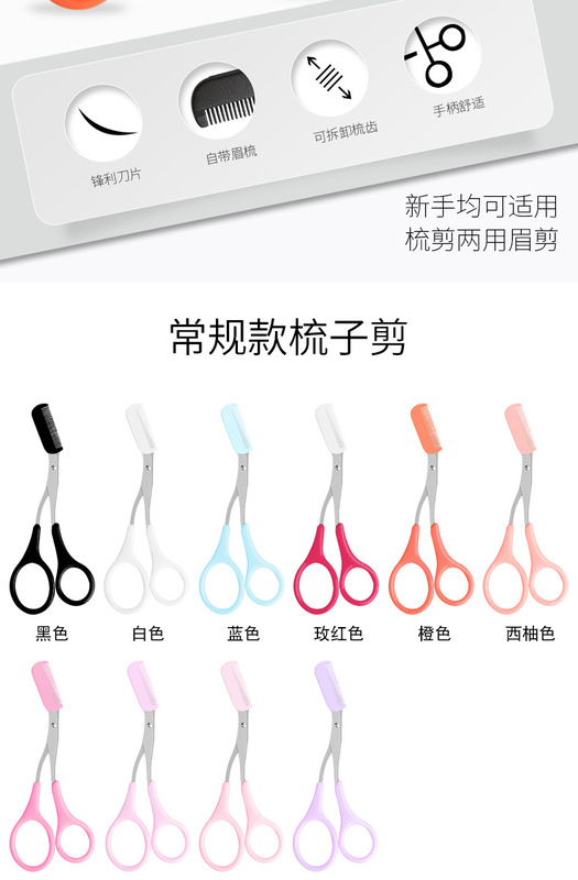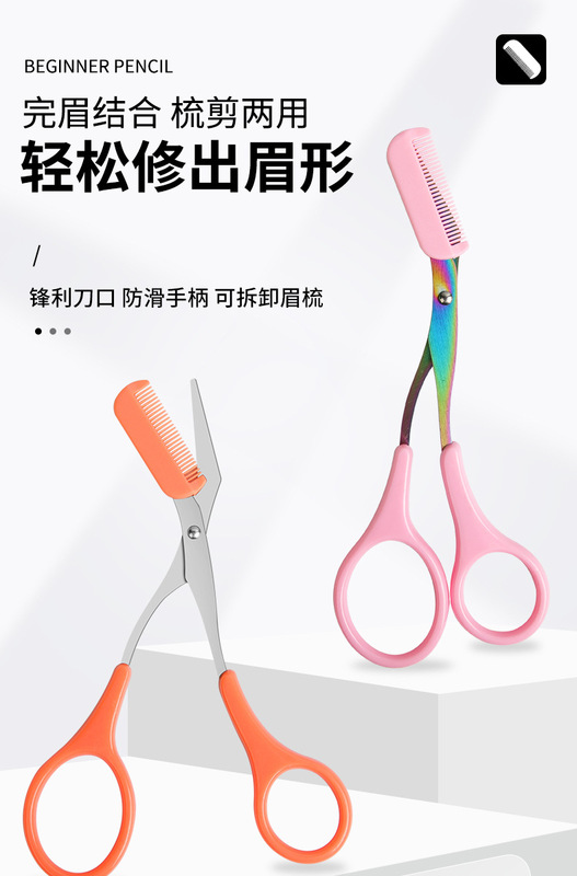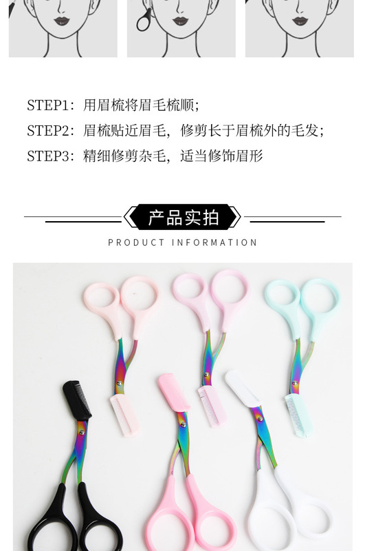 - Types of beauty tools: eyebrow comb and scissors