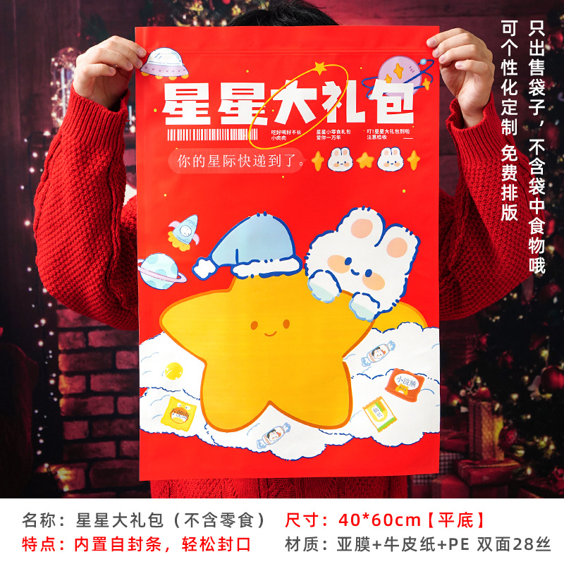 - Specifications and models: 40*50+14cm [10 empty bags] * red stars [self-standing model with self-sealing strip] * 28 silk