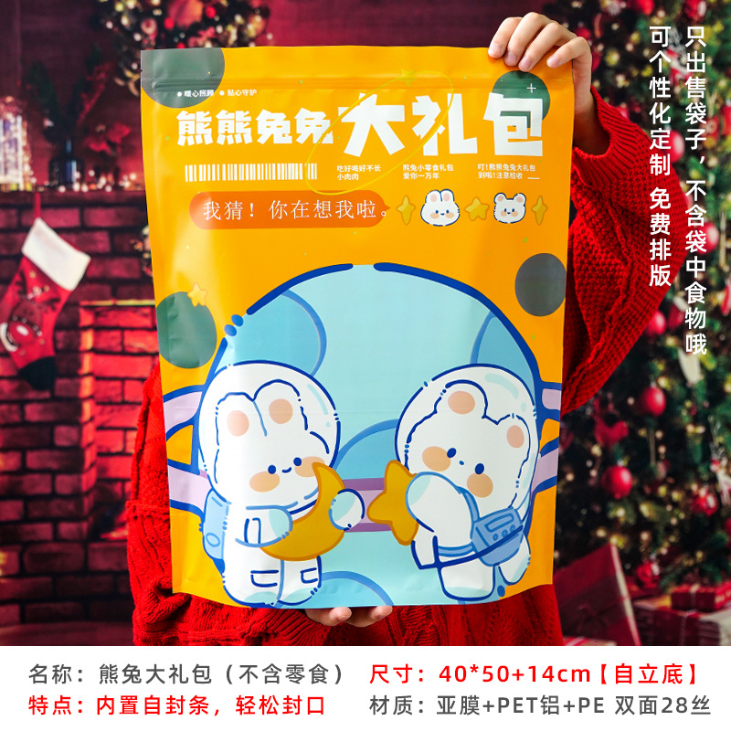 - Specifications and models: 40*50+14cm [1 empty bag] * Yellow Bear Rabbit [Self-standing model with self-sealing strip] * 28 silk