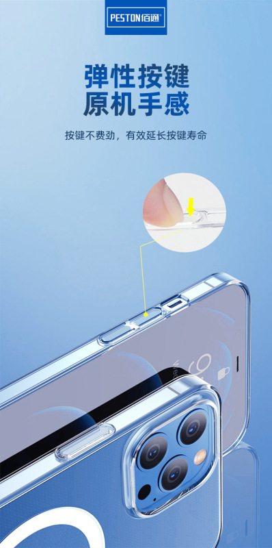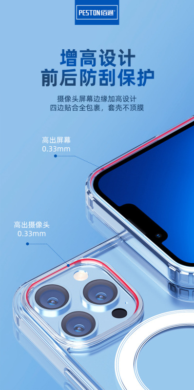 - 手機殼蘋果:佰通適用iPhone14131211ProMax磁吸透明薄防摔全包鏡頭手機套