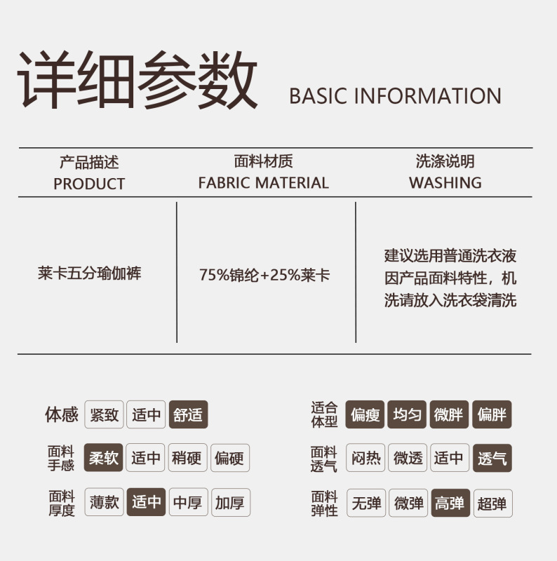 - 里料成分:氨綸