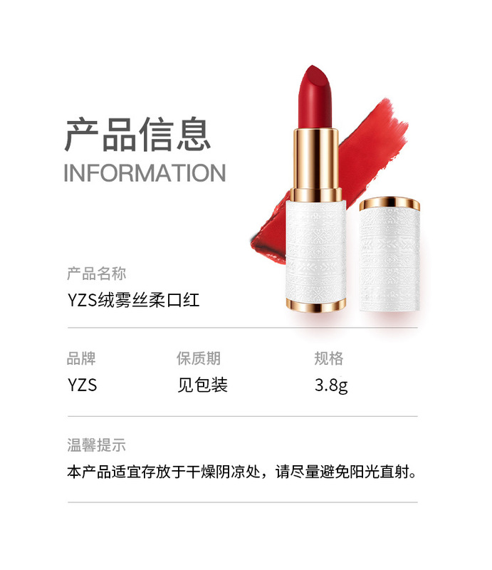 - 產品名稱:YZS絨霧絲柔不沾杯口紅