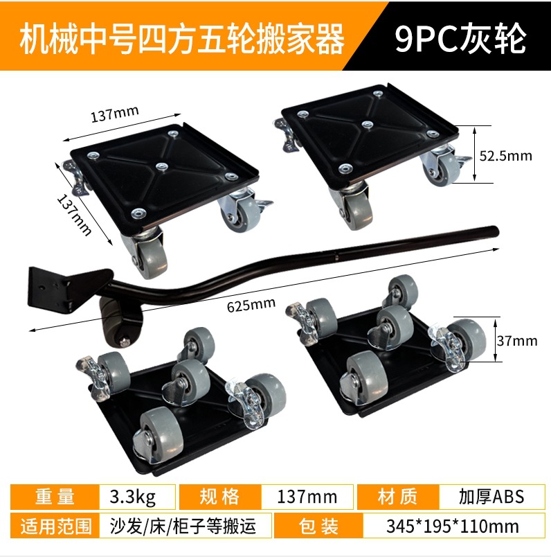 - Model: 9-Piece Metal Five-Wheel Square Moving Tool Set