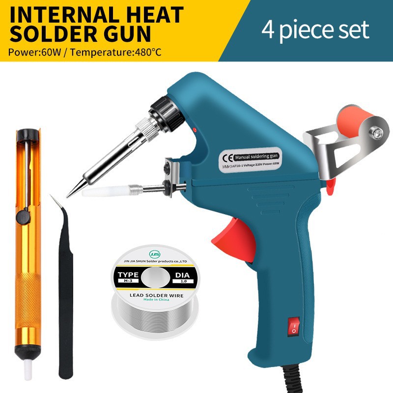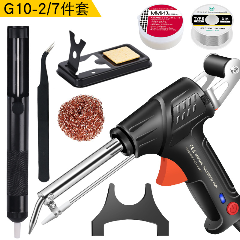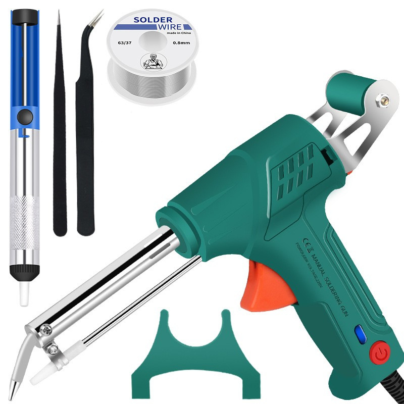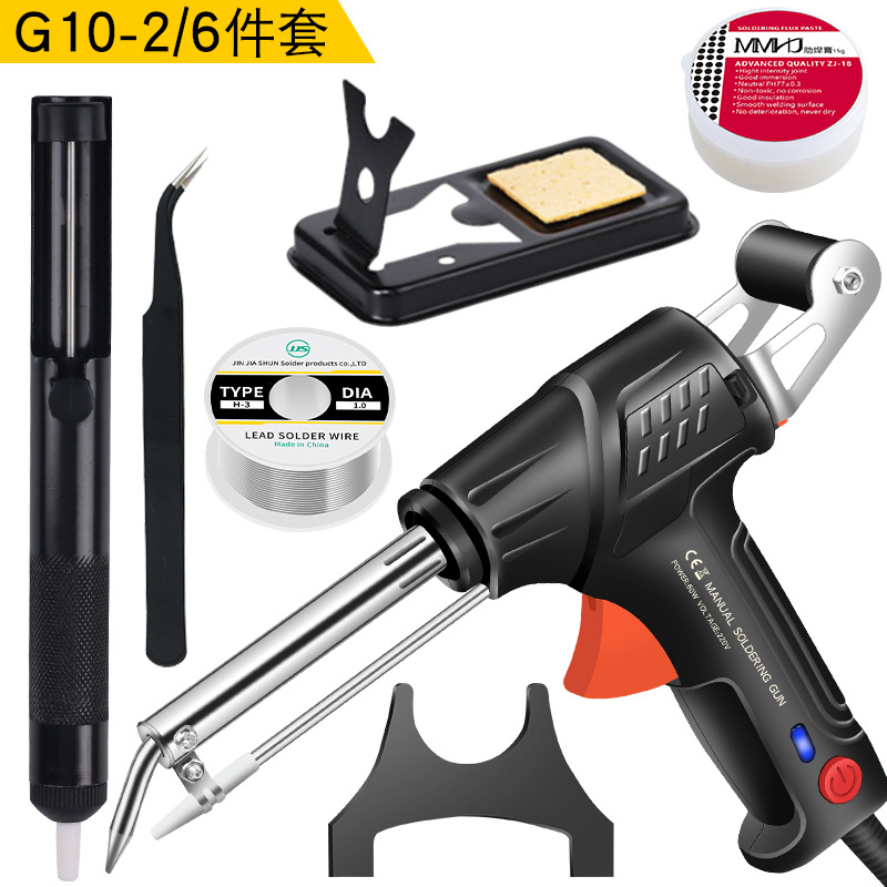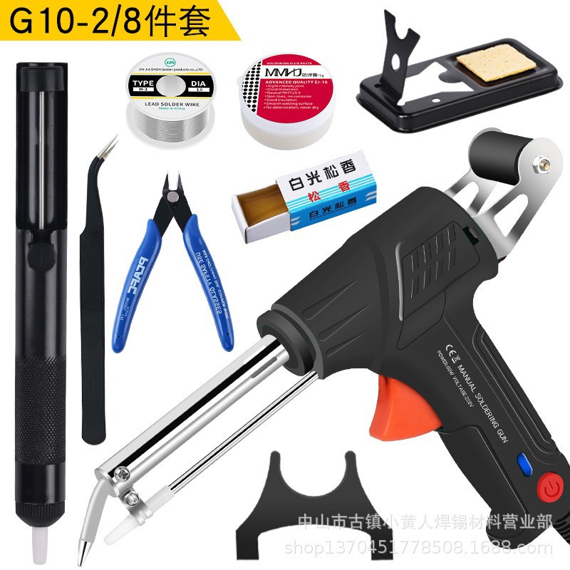 - 型號:【墨綠色】定製美規220VG10外熱式焊錫槍+半鋁吸錫器+尖嘴鑷子+彎嘴鑷子+50g錫絲