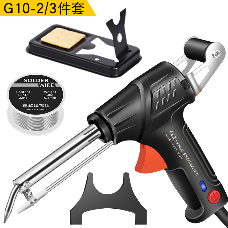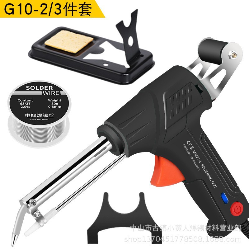 - 型號:G10-2外焊錫槍歐規220V綠色+彎嘴鑷+尖嘴鑷+半鋁器+50g錫絲