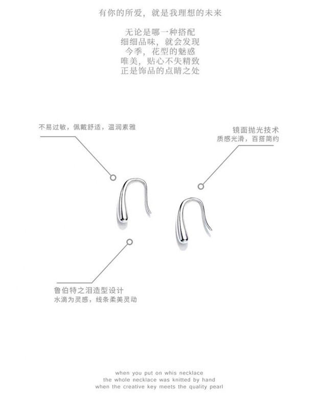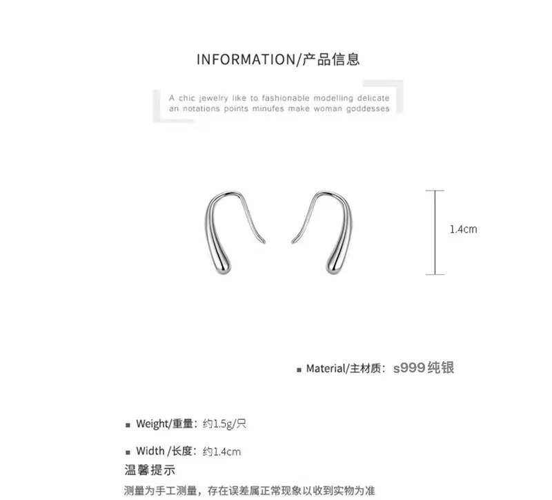 s999 sterling silver water drop tassel earrings, feminine, light, luxury, niche, high-end earrings, men's Korean cold style earrings