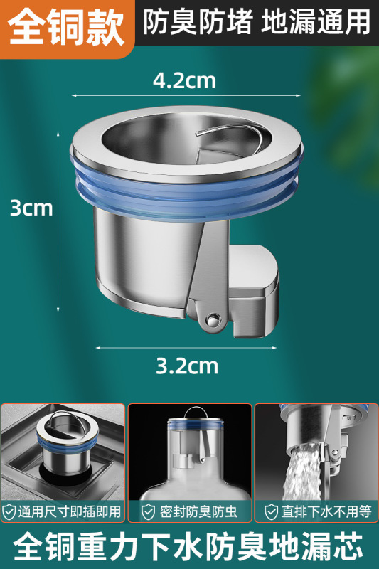 - Specifications: Copper silver-gravity straight floor drain core 1 pack
