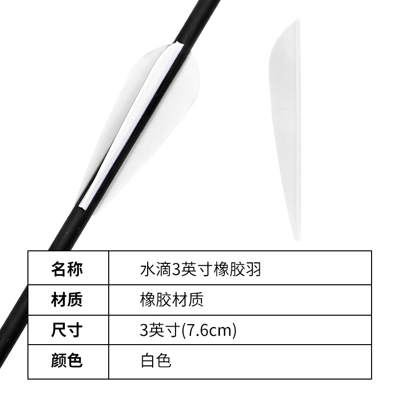 - Specifications: Water Drop 3 Inch Rubber Feather White
