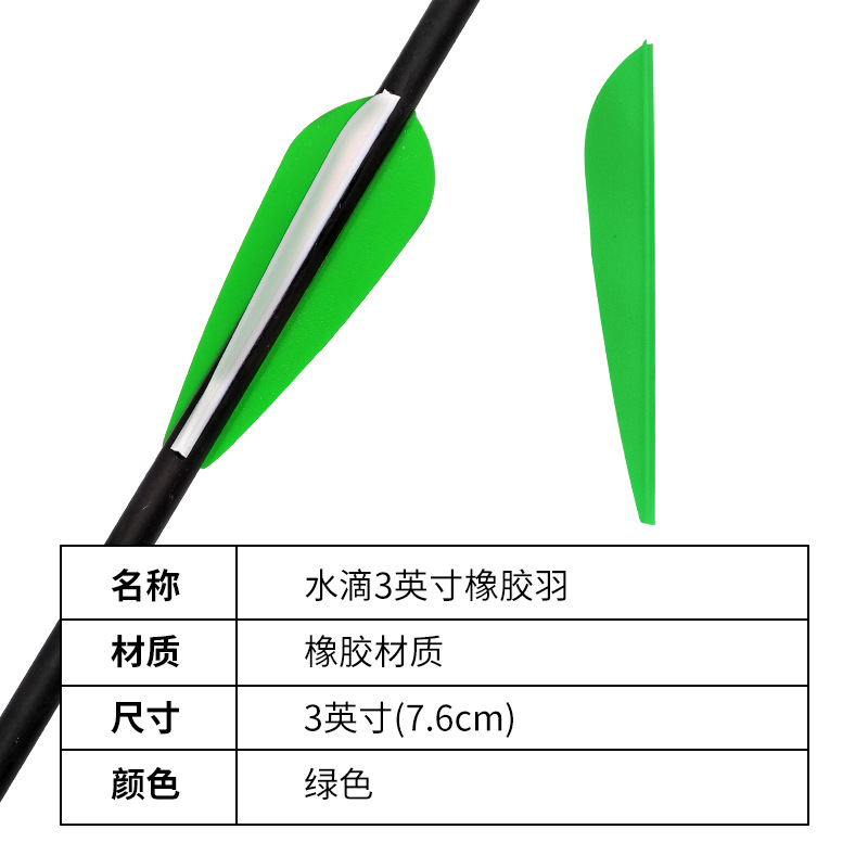 - Specifications: Water Drop 3 Inch Rubber Feather Green