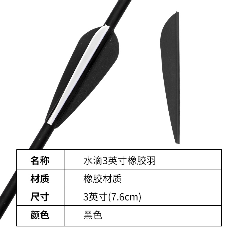 - Specifications: Water Drop 3 Inch Rubber Feather Black