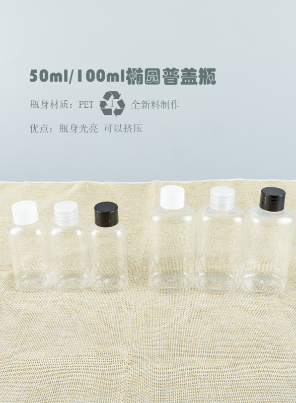 - Specification: 100ml Transparent Elliptical Bottle