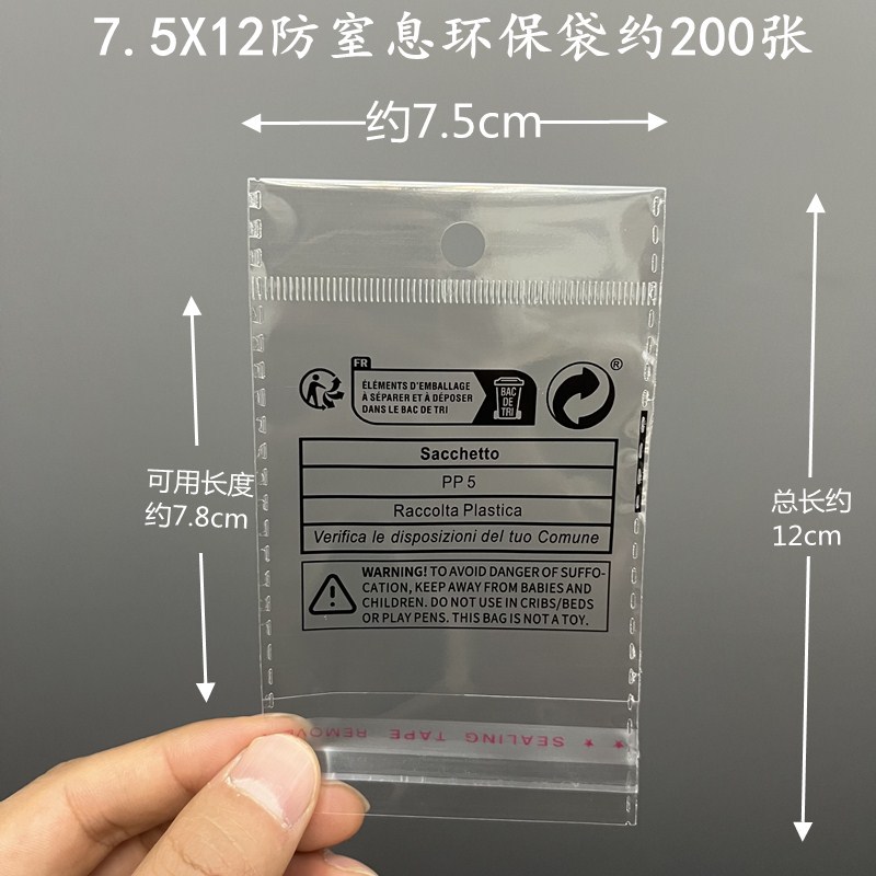 - Specifications and models: Approximately 7.5X12 transparent tape hanging anti-suffocation PP5 bag