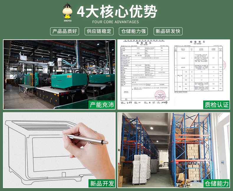 - Proportion of new plastic materials: 100% new materials