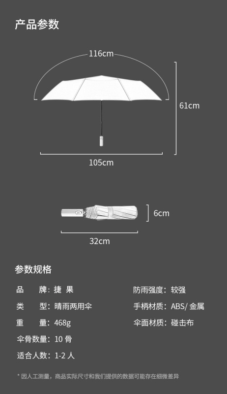 - 收傘方式:半自動