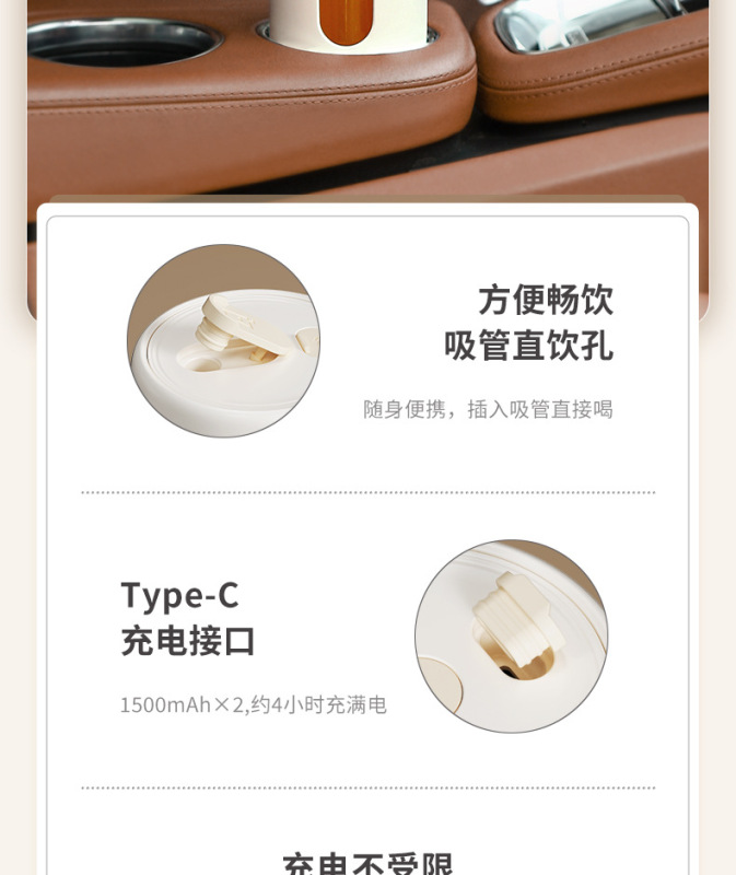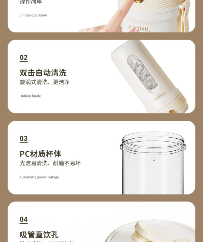 - Packing list: Juicing cup + straw + charging cable + instruction manual