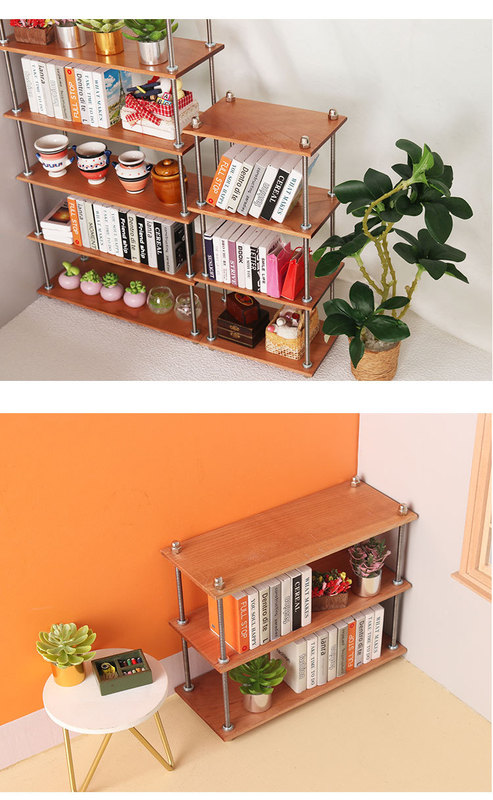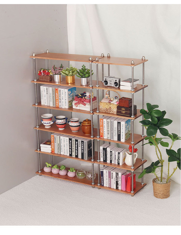 微縮食玩置物架收納架書架迷你模型櫻桃木1:6分bjd娃娃屋家具diy