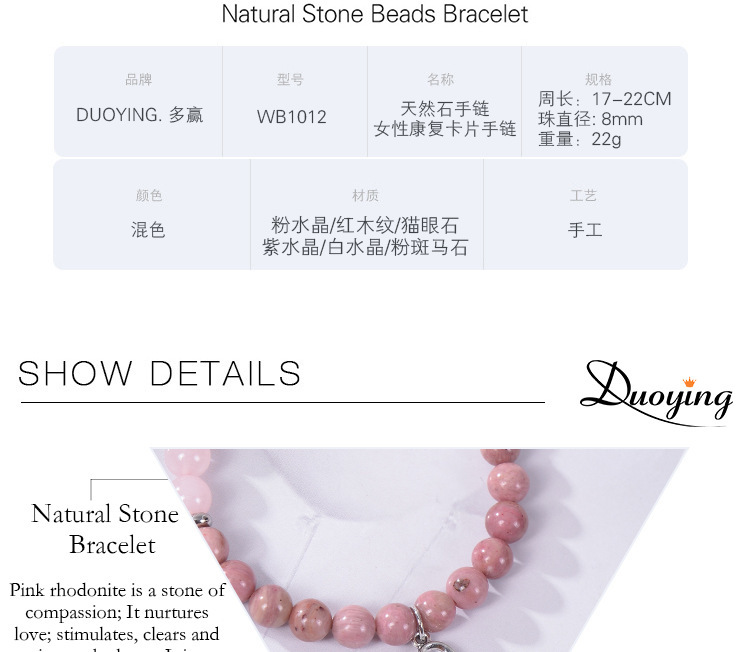 - 材質:粉水晶紅木紋白水晶貓眼石粉斑馬石紫水晶