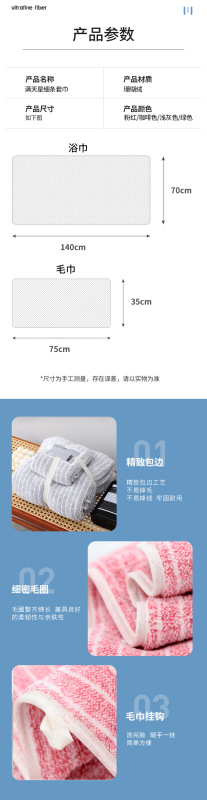 - Specifications (length * width cm): towel 35*75cm + bath towel 70*140cm (frosted bag)