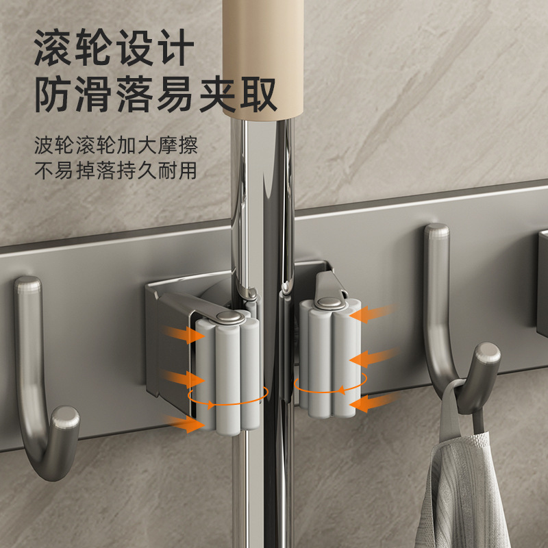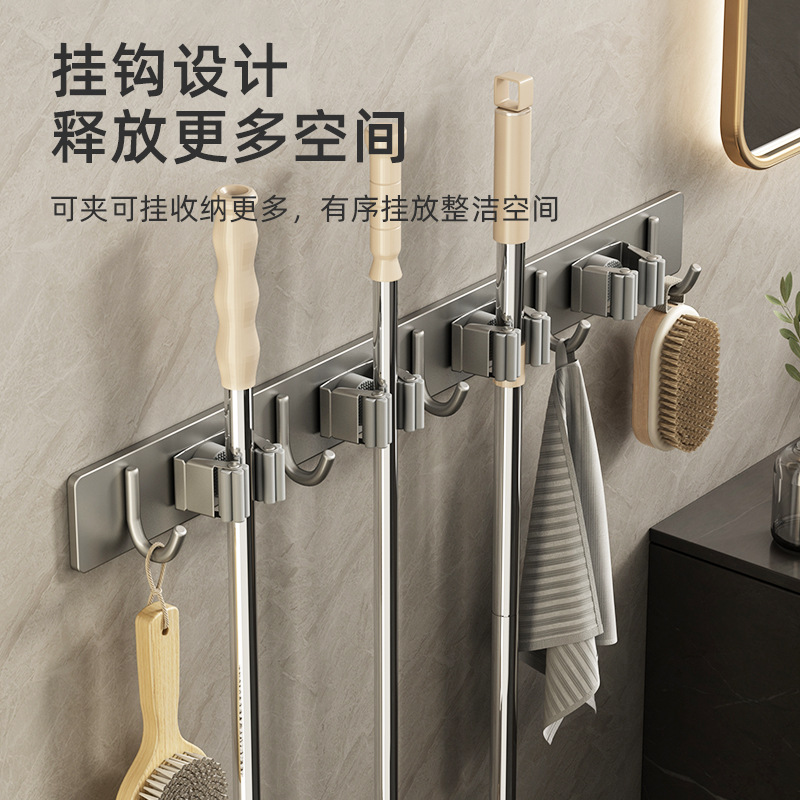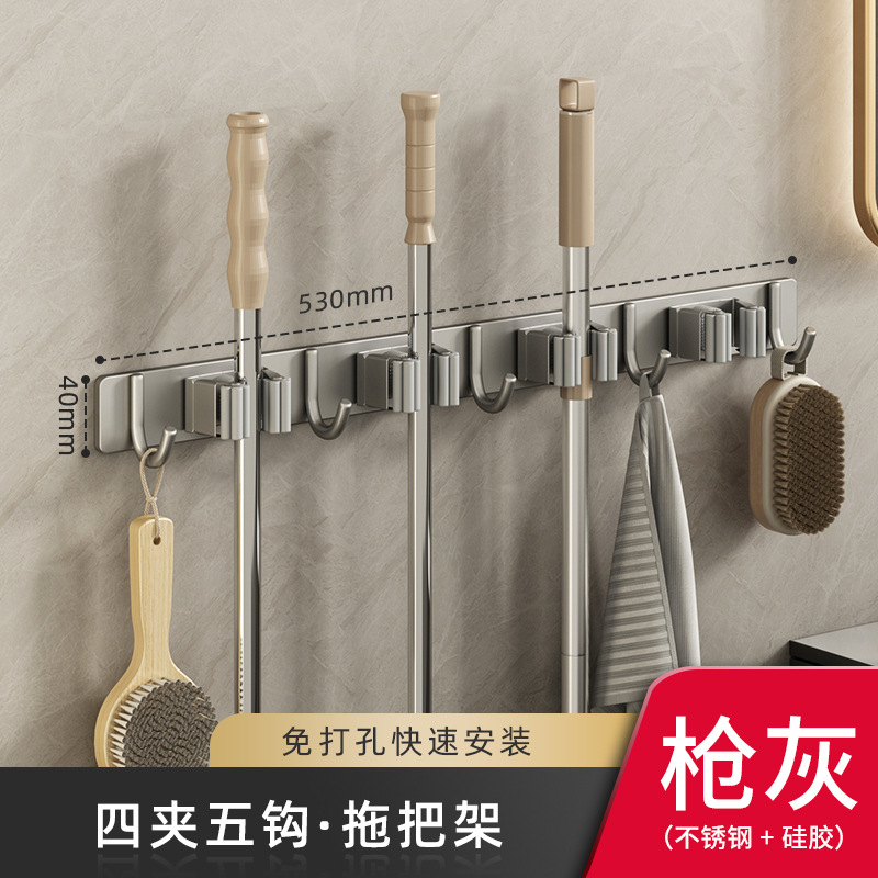 - Specifications: Gun gray four-clip and five-hook mop holder