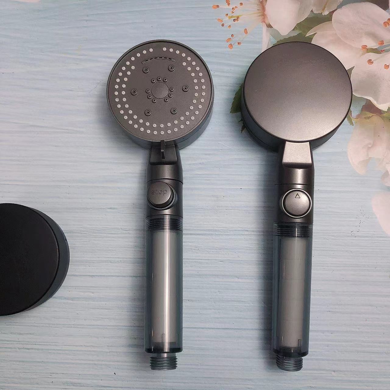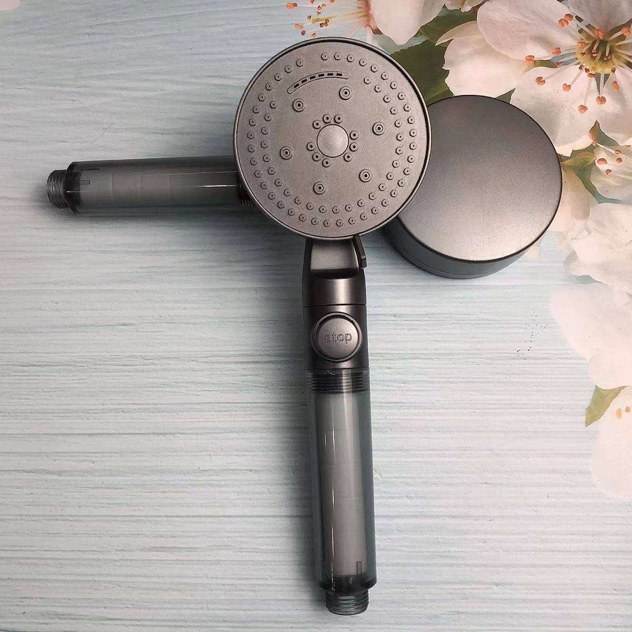 - Specification: Gun Gray 8-Stage Transparent One-Touch Water Stop Soft Spray