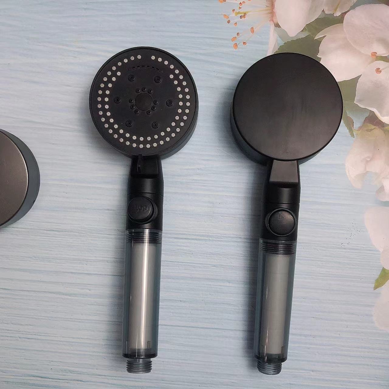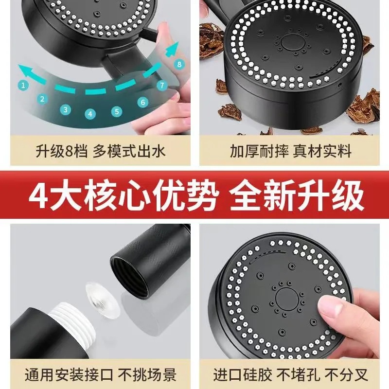 - Specification: Black 8-Stage Transparent One-Touch Water Stop Soft Spray