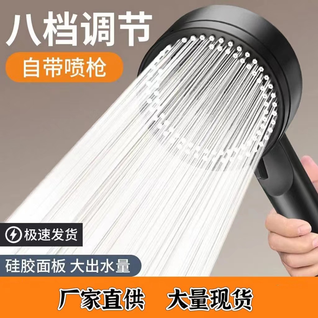 - Specification: Black 8-Stage One-Touch Water Stop Soft Spray