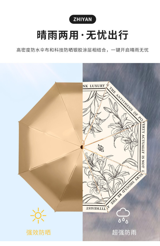 - Popular trend words: lily pattern, titanium umbrella stand, gold glue double-layer umbrella cloth