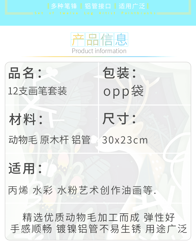 - Model: 12-pack Horsehair Drawing Brush Set