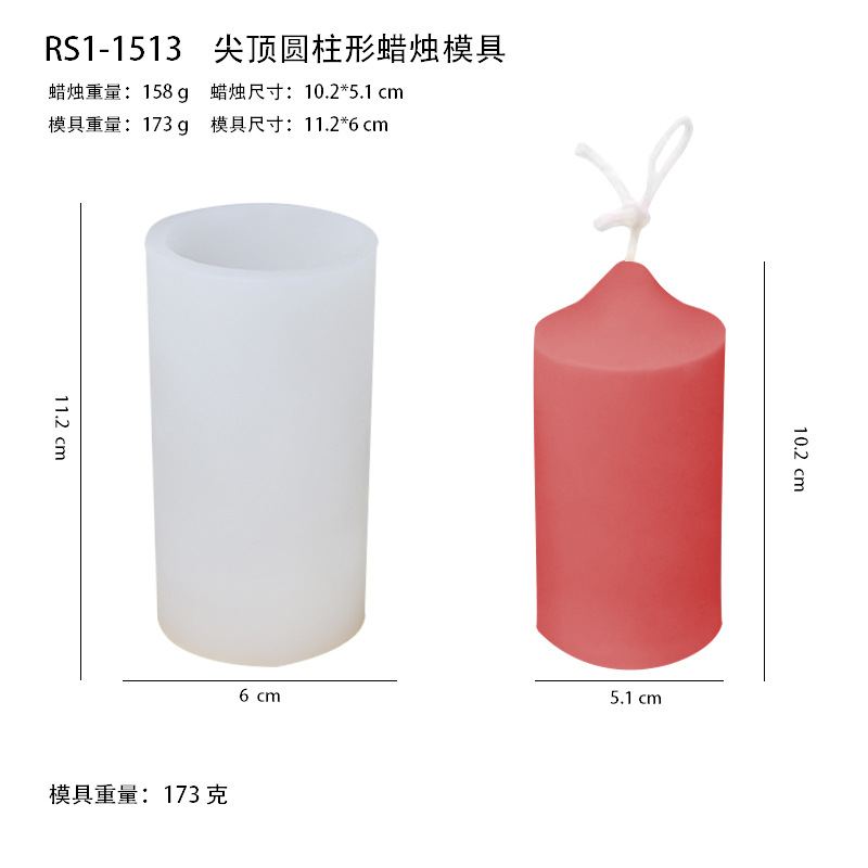 - 規格:尖頂粗圓柱形蠟燭模具RS1-1513