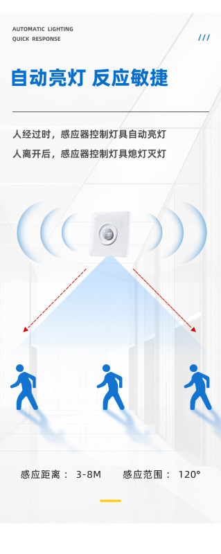 - Sensing principle: infrared human body sensing