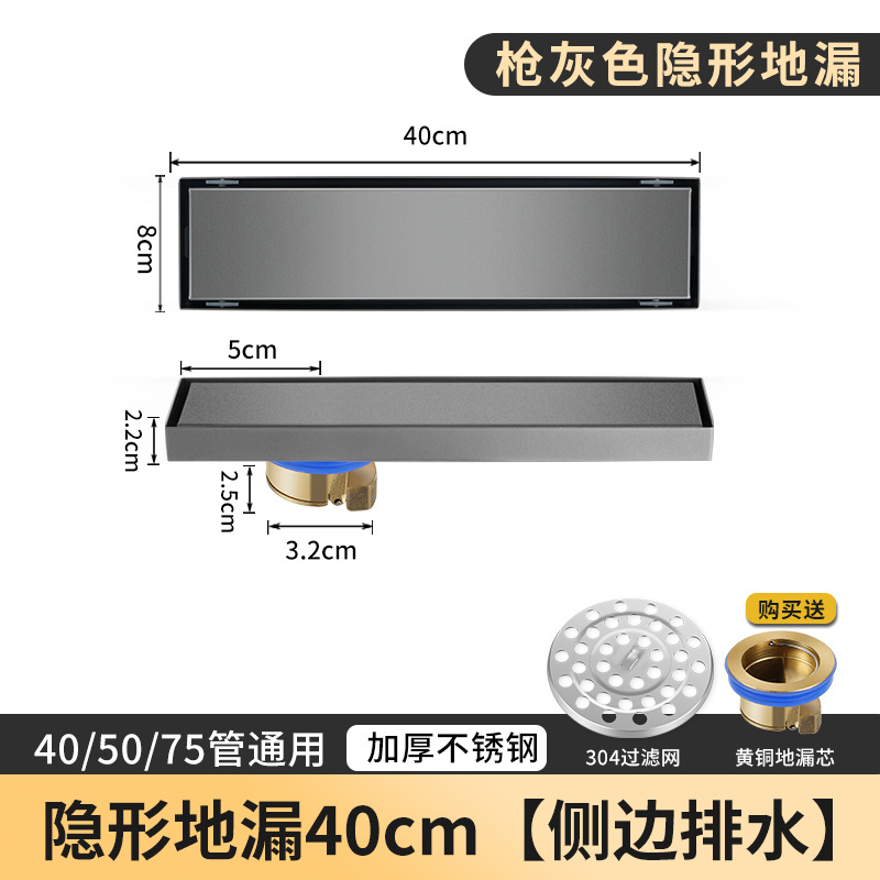 - Specification: Gun gray invisible 40cm [Side drainage - copper core]