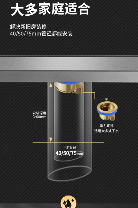 - Specification: Gun gray invisible 60cm [Side drainage - copper core]