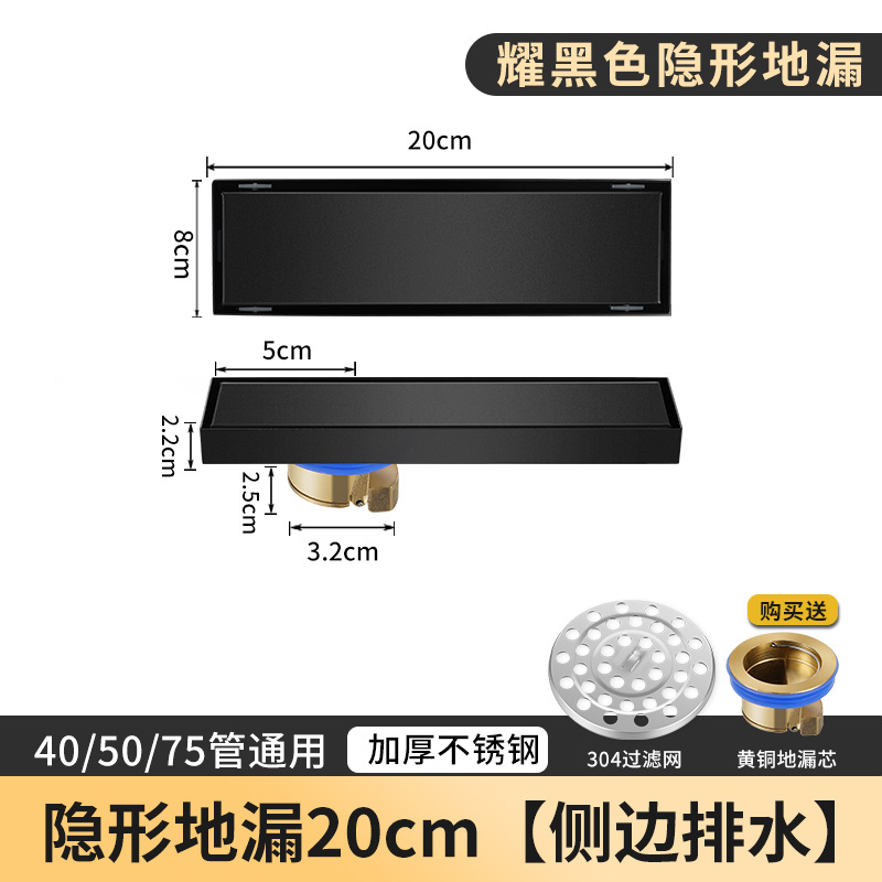 - Specification: Polished black invisible 20cm [Side drainage - copper core]