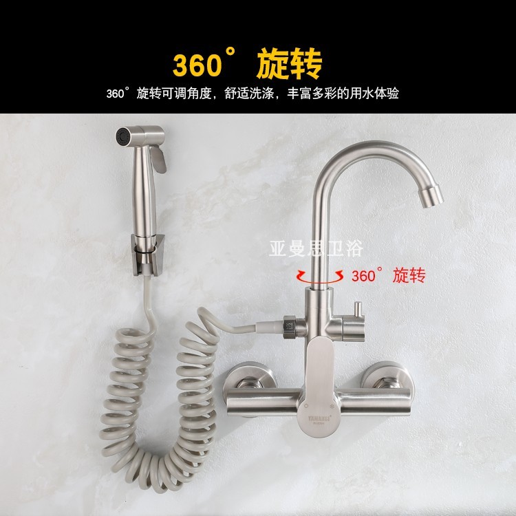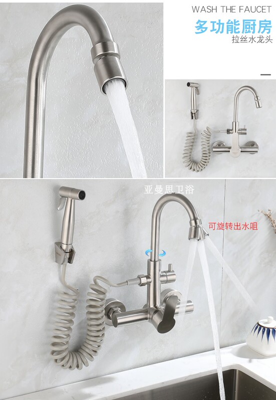 - Specifications: (Elbow 2 outlet) 304 wall-mounted hot and cold faucet (swinging spout with spray gun and D seat to deliver glue)