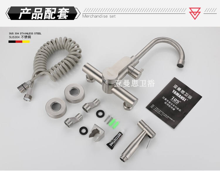 - Specifications: (Elbow 2 outlet) 304 in-wall hot and cold faucet (with spray gun and D seat) free nail-free glue