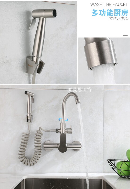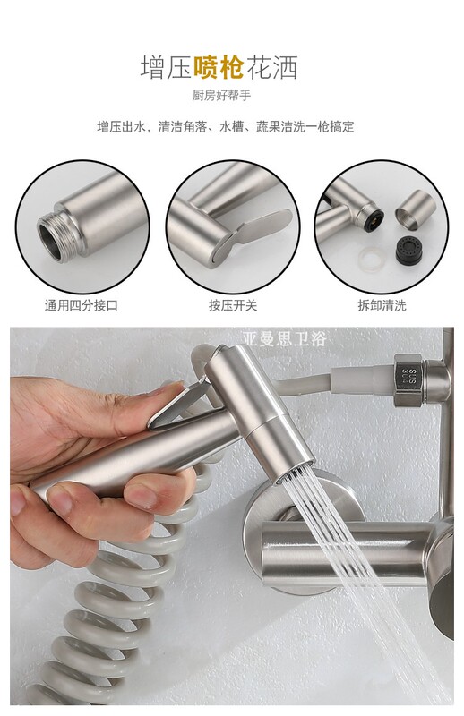- Model: In-wall stainless steel kitchen faucet with spray gun