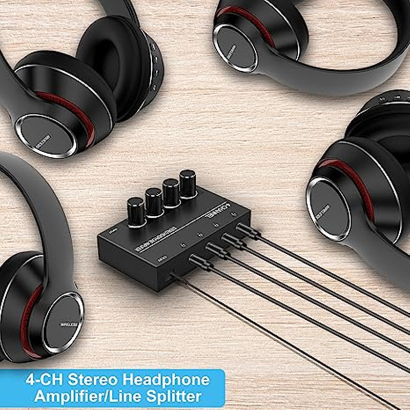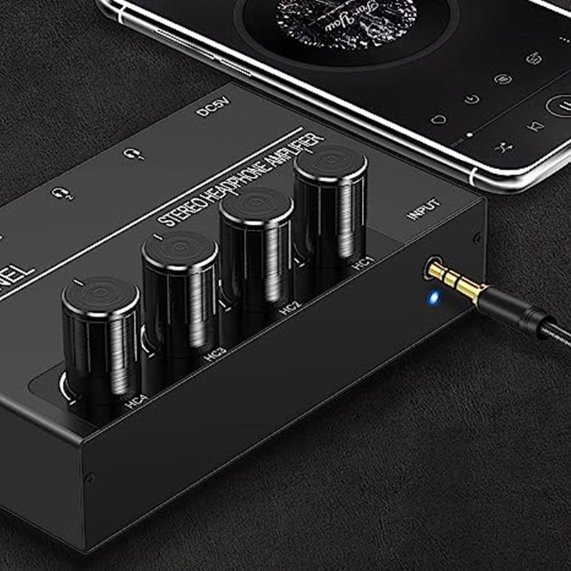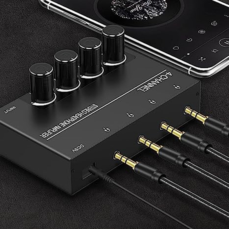 - Purpose: 3.5mm audio input to 4 outputs with rotary volume control